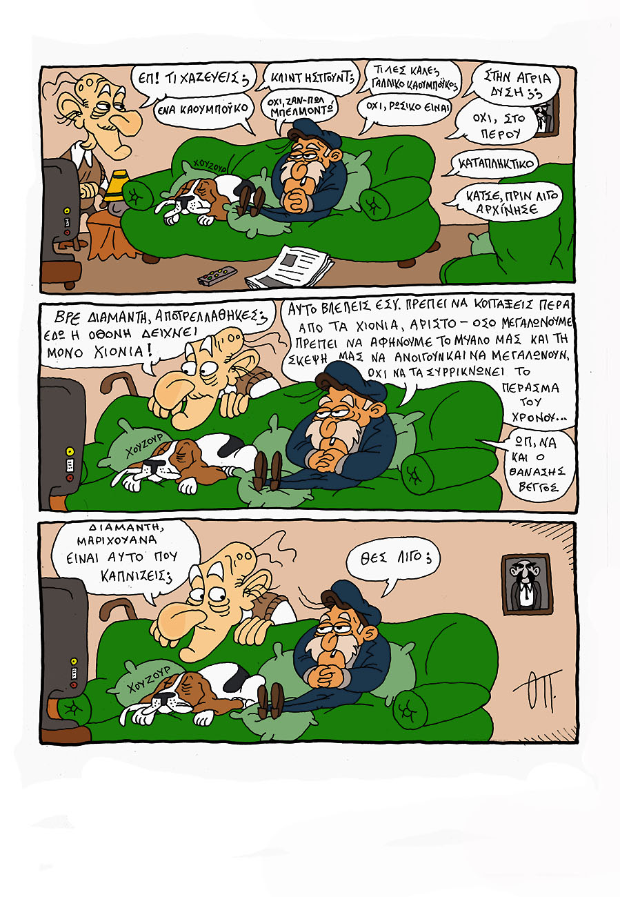 Ο Θανάσης Πετρόπουλος, σκιτσογράφος και προσφάτως βραβευμένος με το Βραβείο Πρωτοεμφανιζόμενου Ηθοποιού στο 23ο Διεθνές Φεστιβάλ Κινηματογράφου της Αθήνας – Νύχτες Πρεμιέρας σκιτσάρει και πρωταγωνιστεί στην ταινία “Όντως, Φιλιούνται?” του Γιάννη Κορρέ.